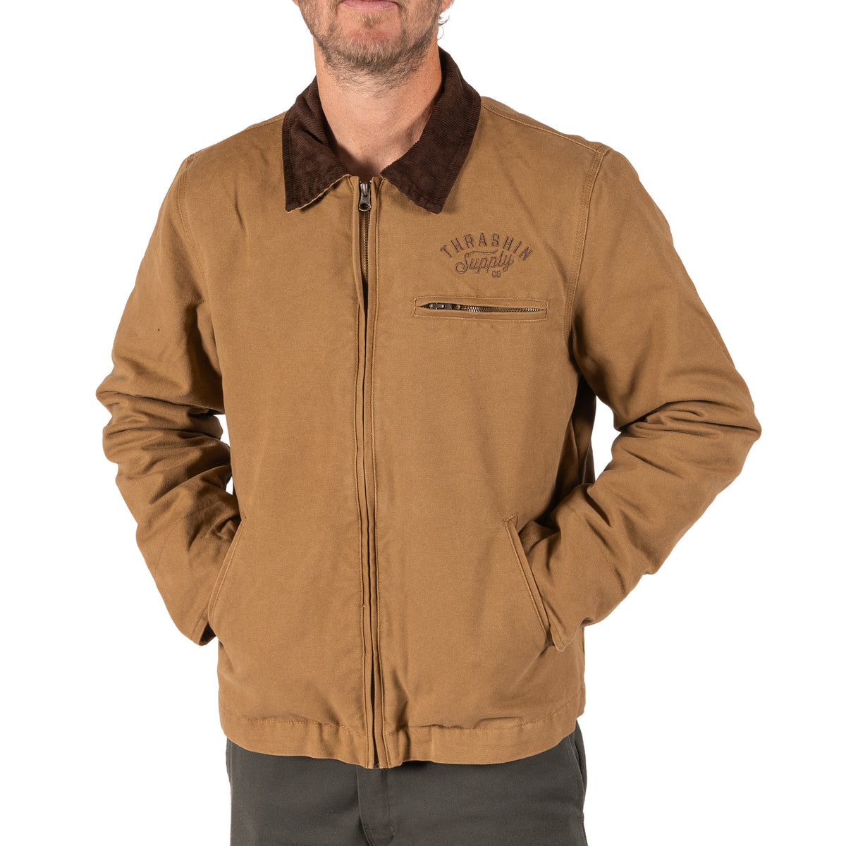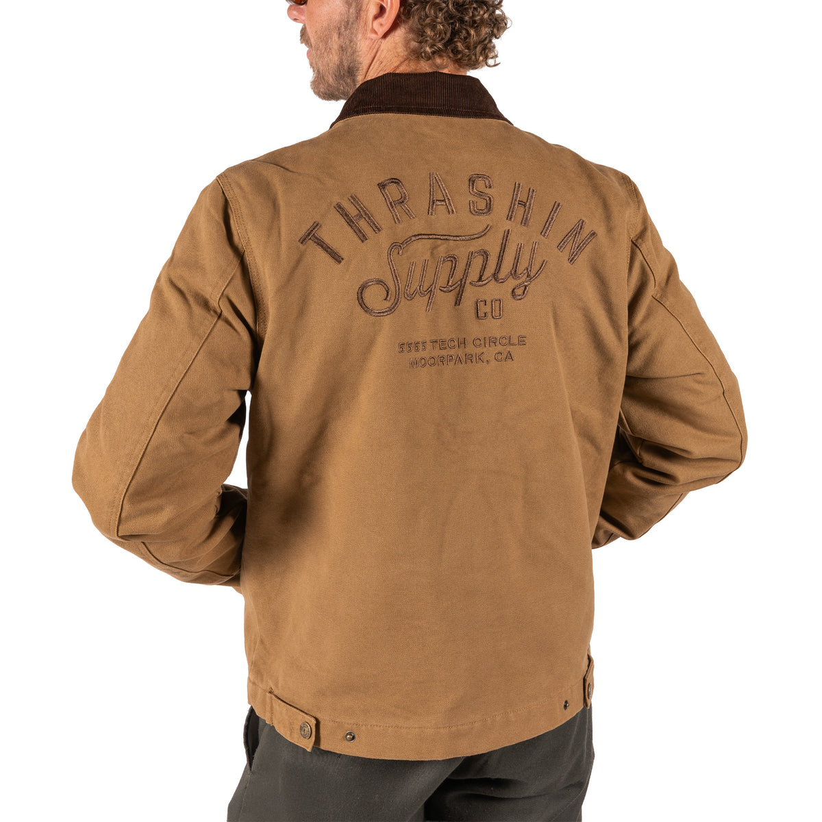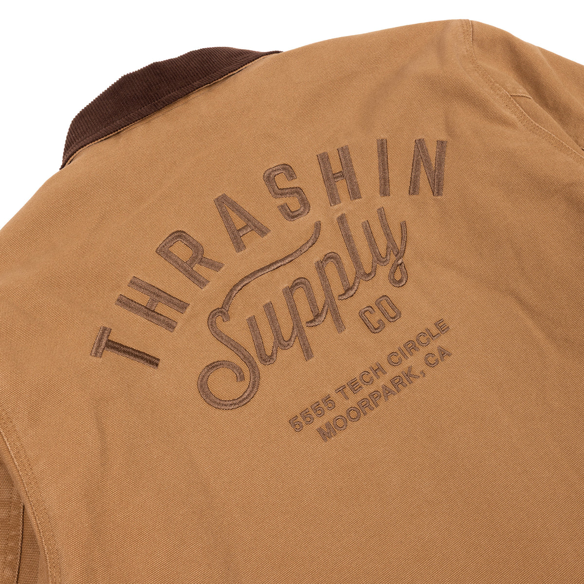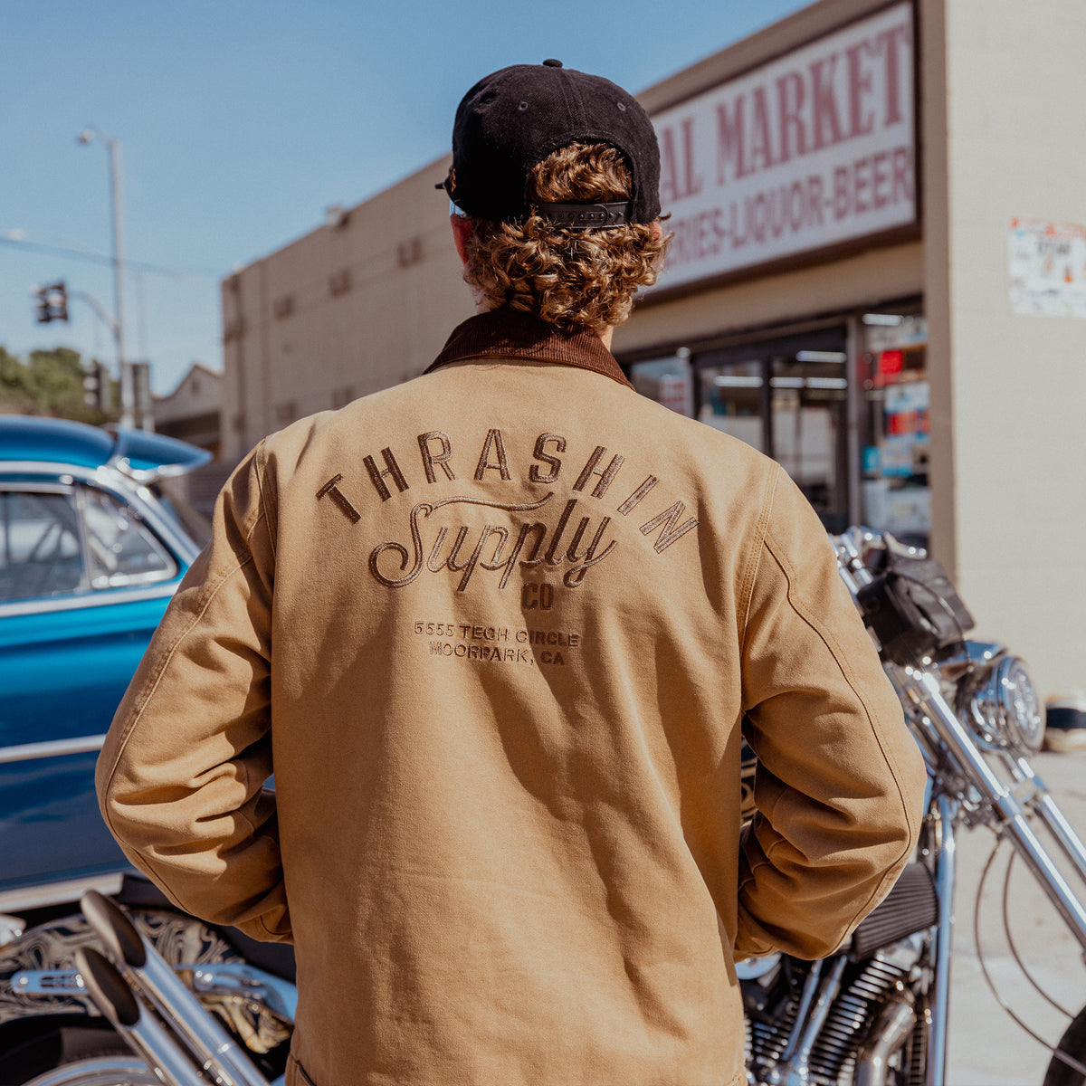The THRASHIN® Foundry Jacket combines a 100% cotton canvas shell with a heavy wool blend lining, creating the perfect combination of comfort, durability, and style.