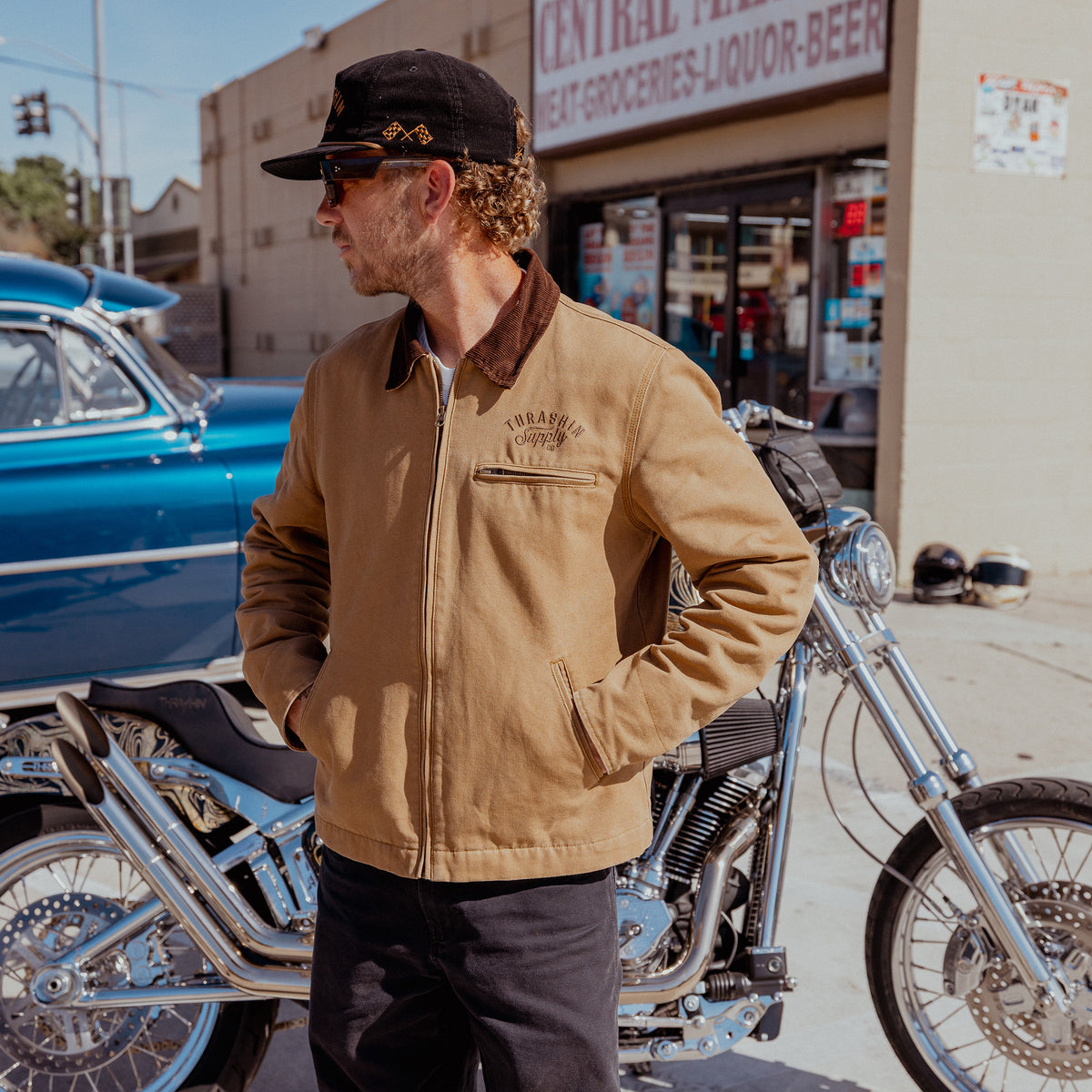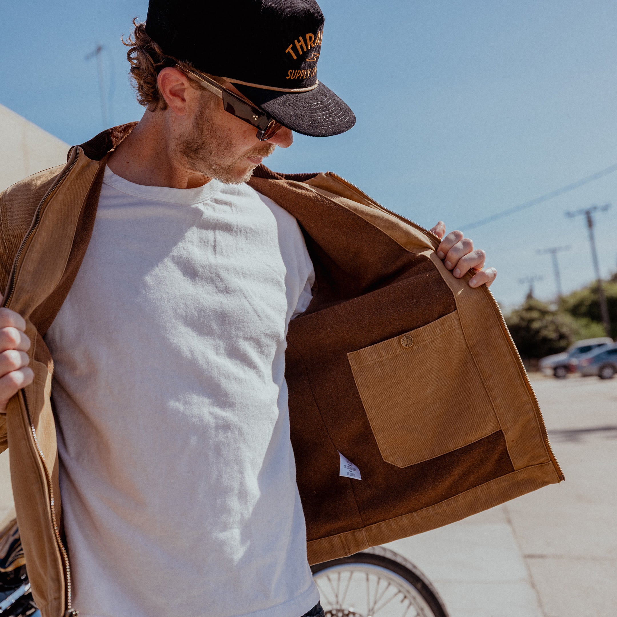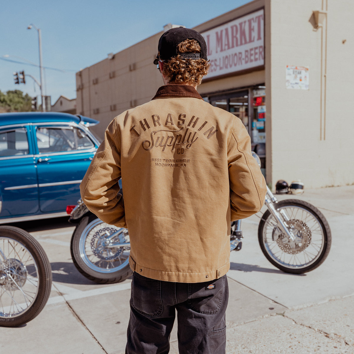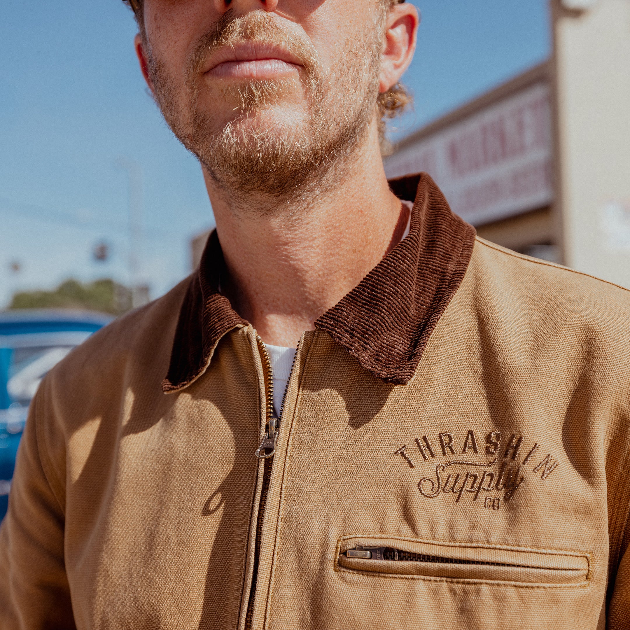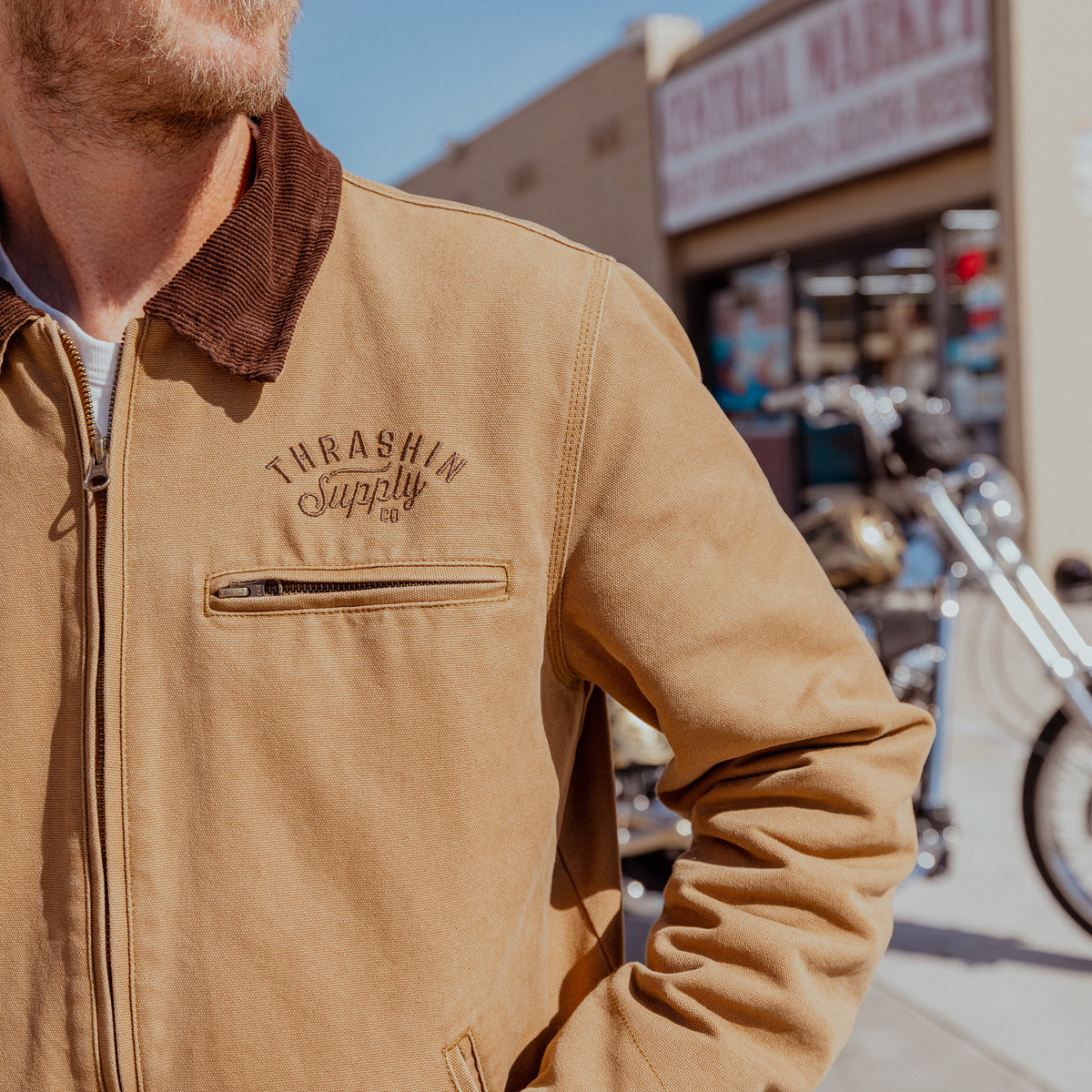 The THRASHIN® Foundry Jacket combines a 100% cotton canvas shell with a heavy wool blend lining, creating the perfect combination of comfort, durability, and style.