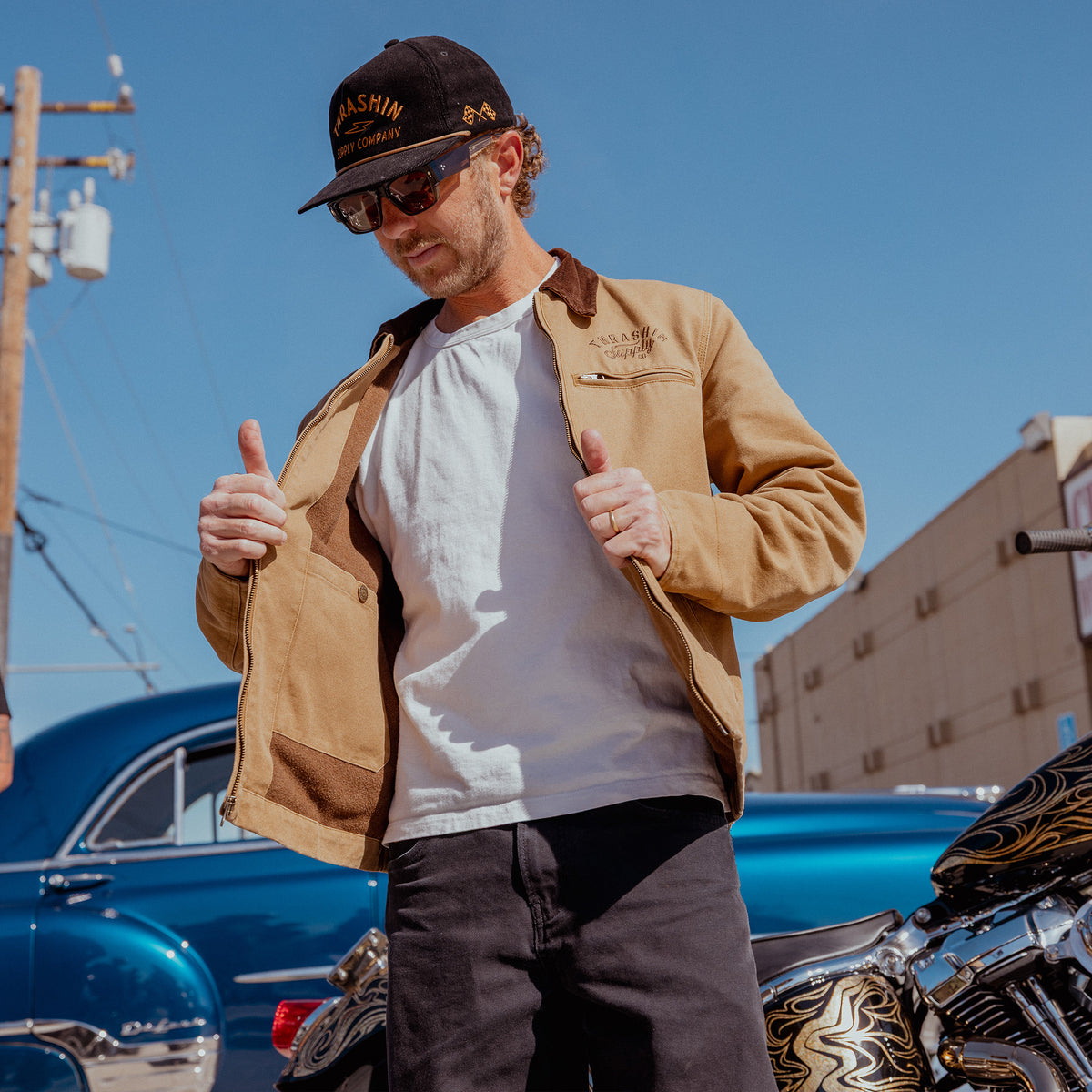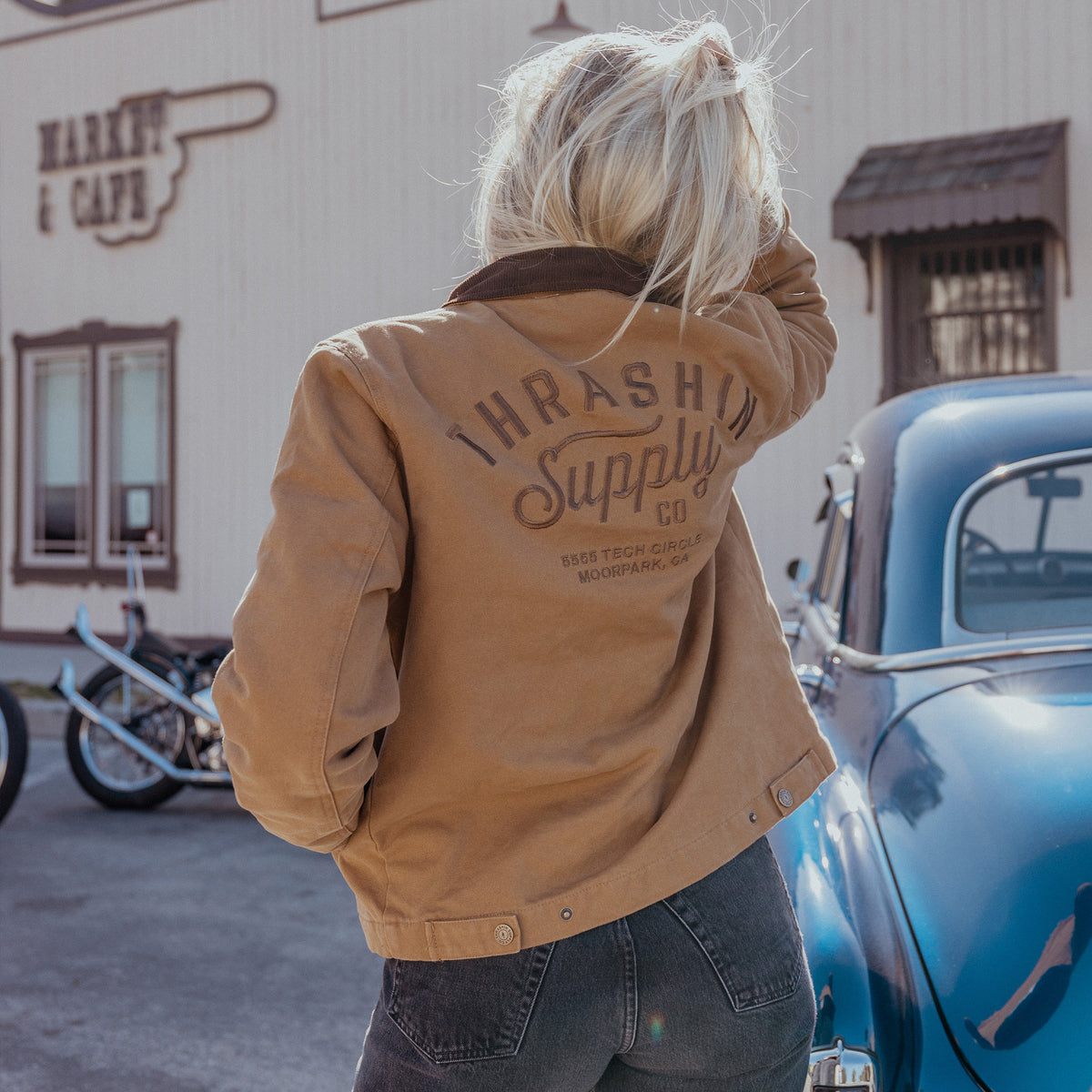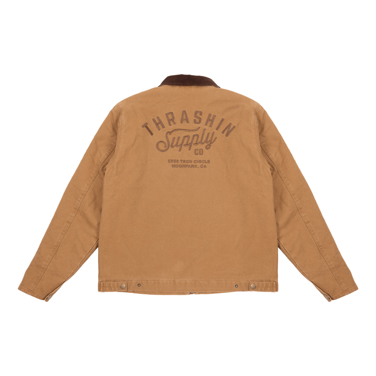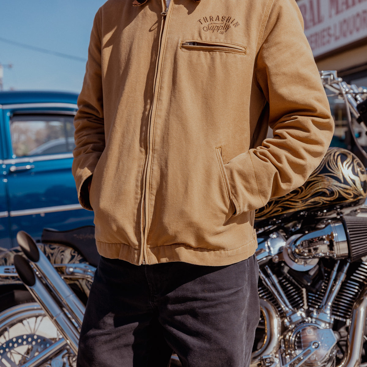 The THRASHIN® Foundry Jacket combines a 100% cotton canvas shell with a heavy wool blend lining, creating the perfect combination of comfort, durability, and style.