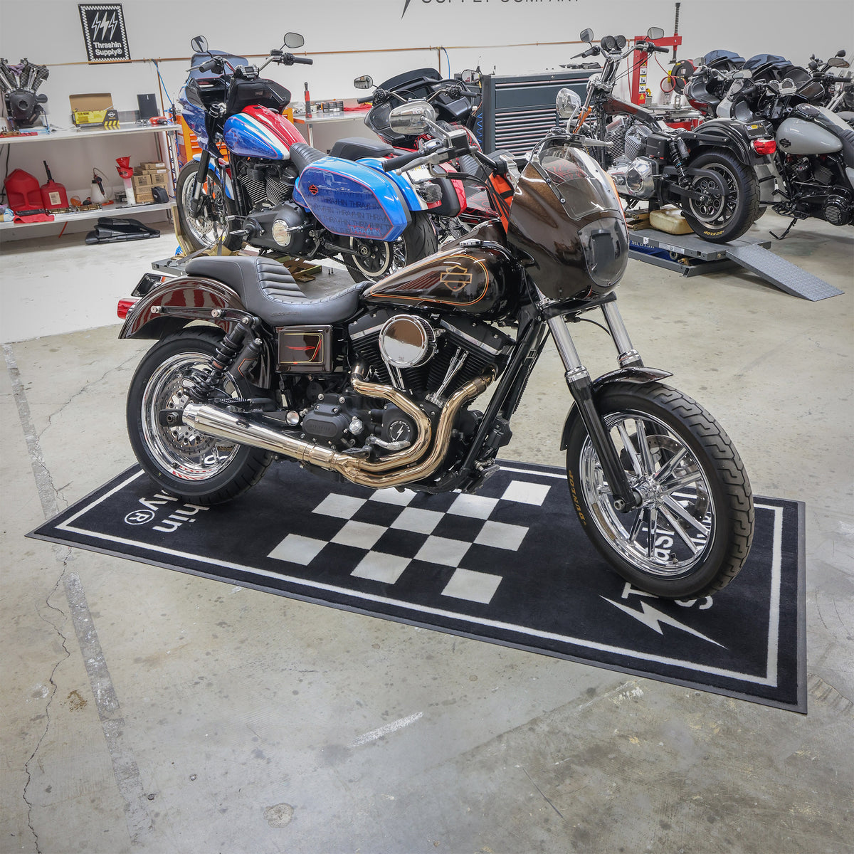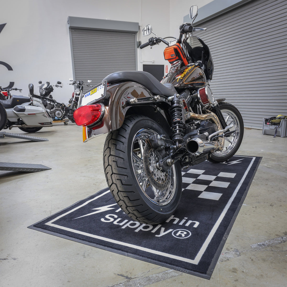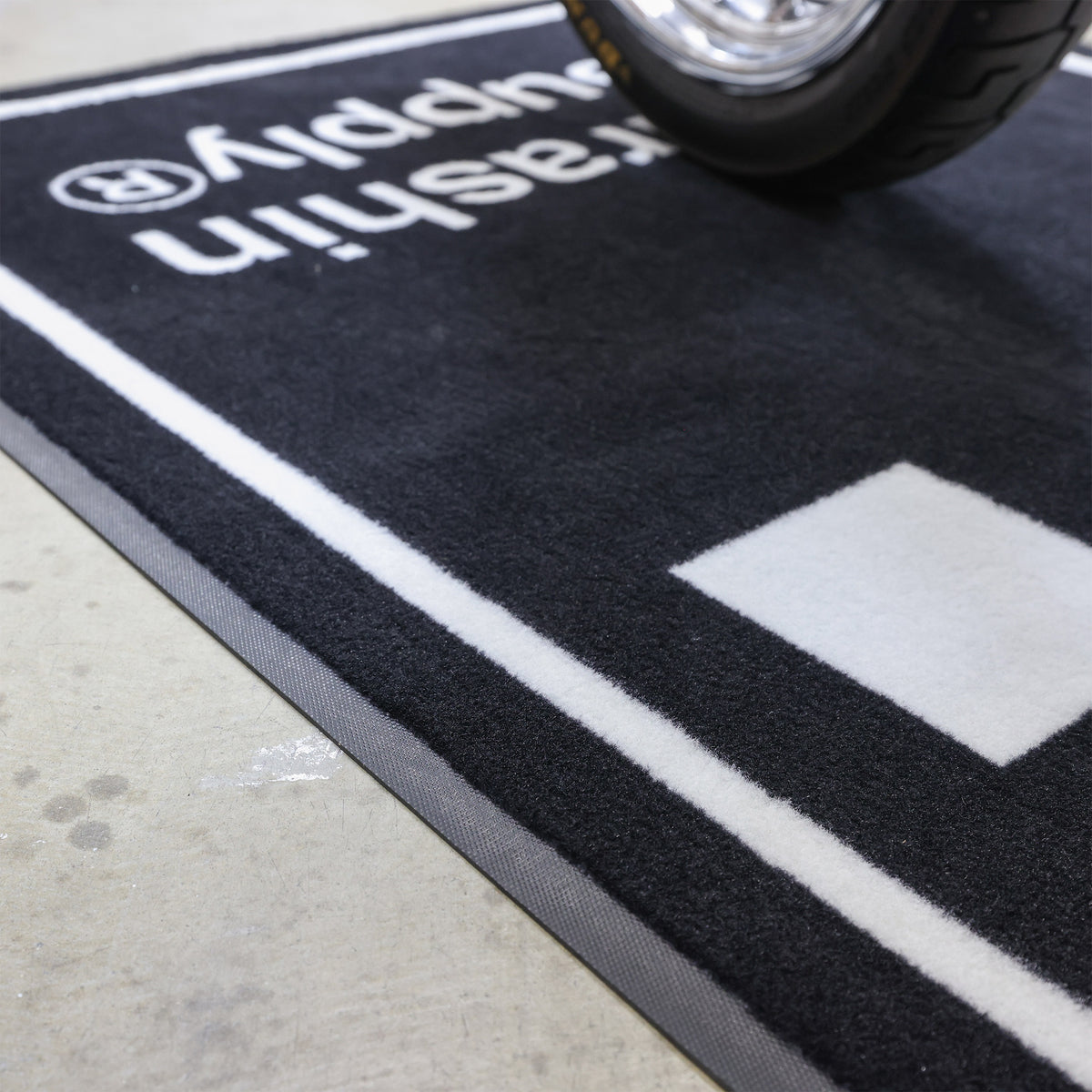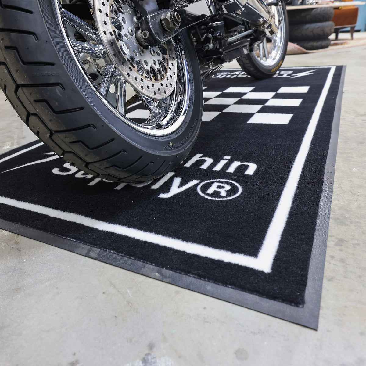 Add some style to your garage with our Official Carpeted Rubber Bike Mat! This 8' x 3.5' bike mat is the perfect way to spruce up your garage and keep your floors clean.