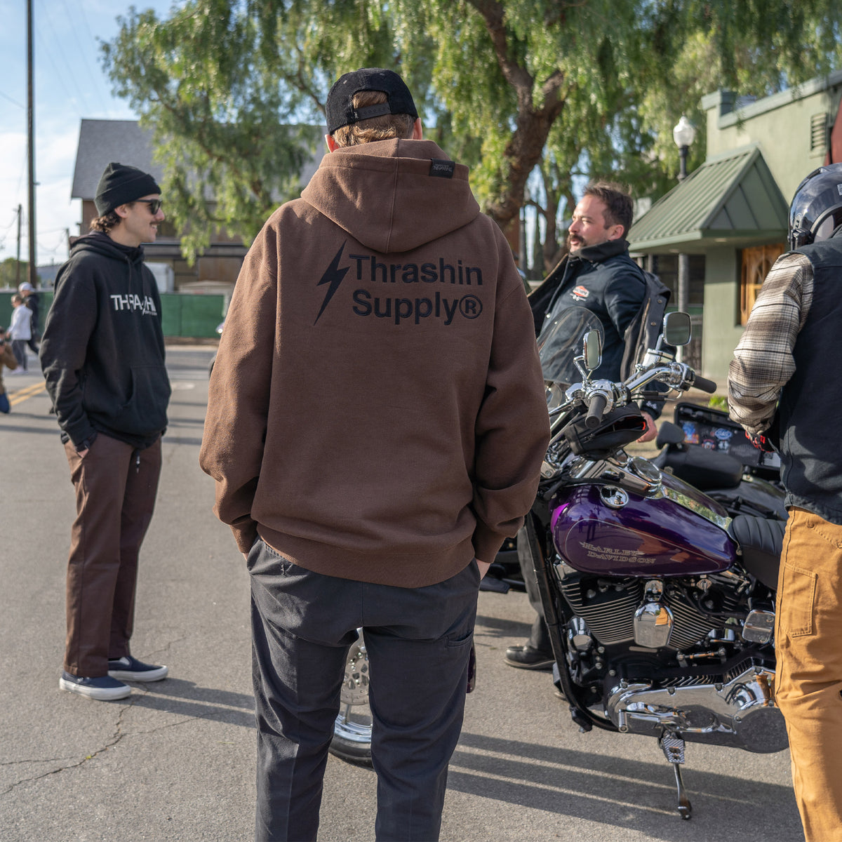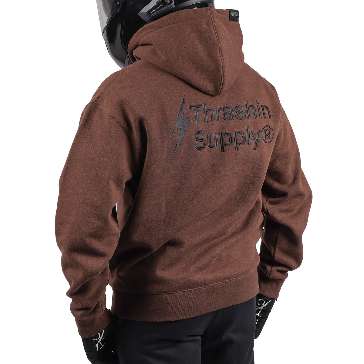 Designed with riding in mind, our hoodies feature elastic thumb loops that help keep your sleeves in place while riding at high speeds and a hidden zipper pocket on the right hip with enough room to hold your phone and/or wallet! This hoodie has an oversized fit, drop shoulder, and no drawcord for a relaxed feel and modern appearance.