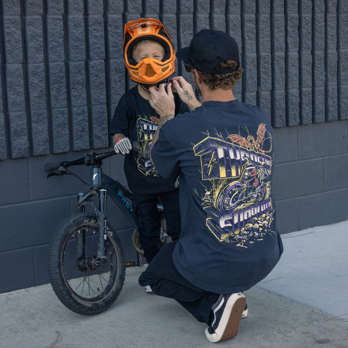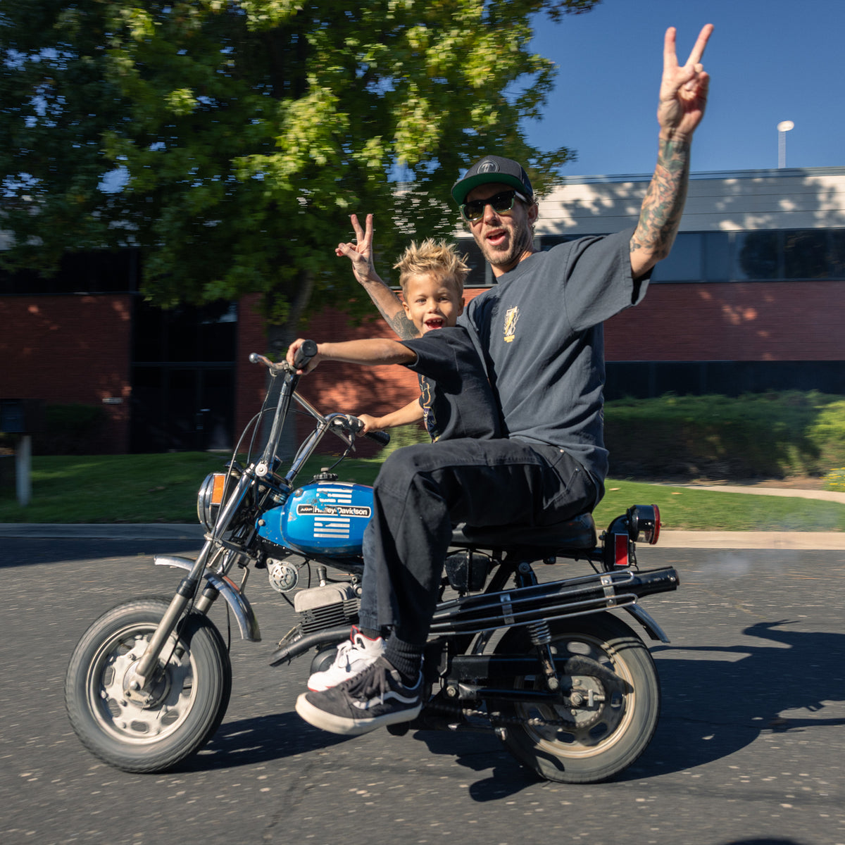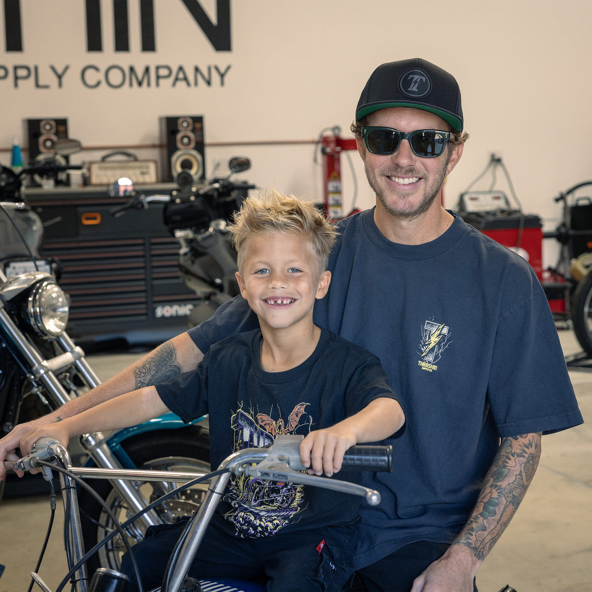 This 6.5 oz 100% cotton tee is knit, cut, sewn, and printed in United States of America. The slight drop shoulder and wide body offer a versatile fit. Matched with a lightly faded wash and soft hand 8 color screen print for that lived-in tee feel.