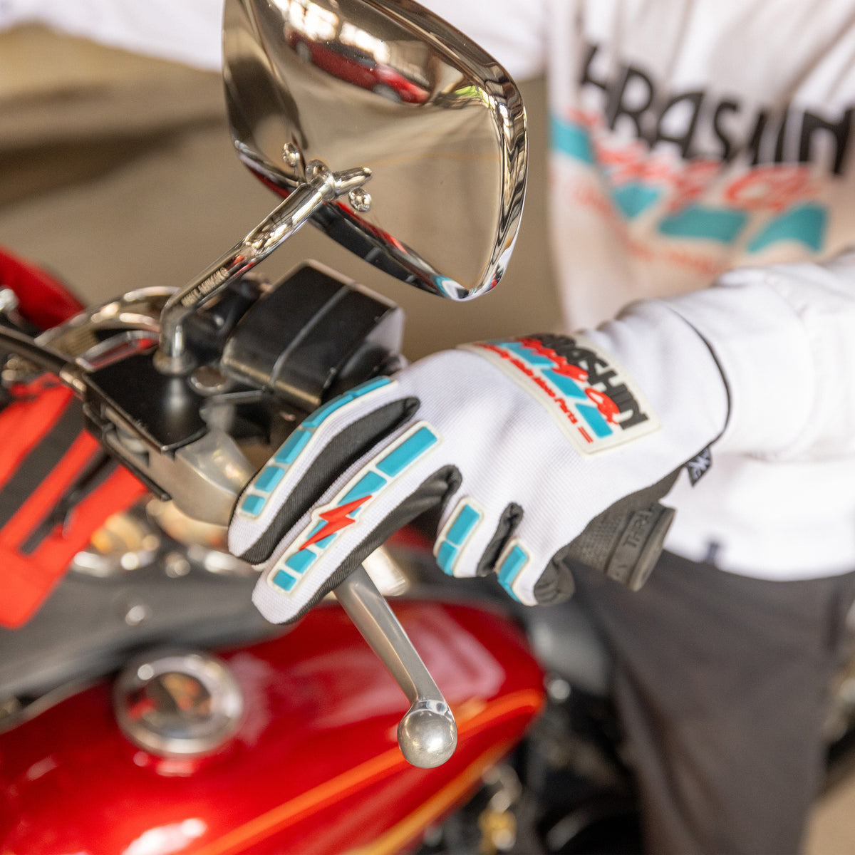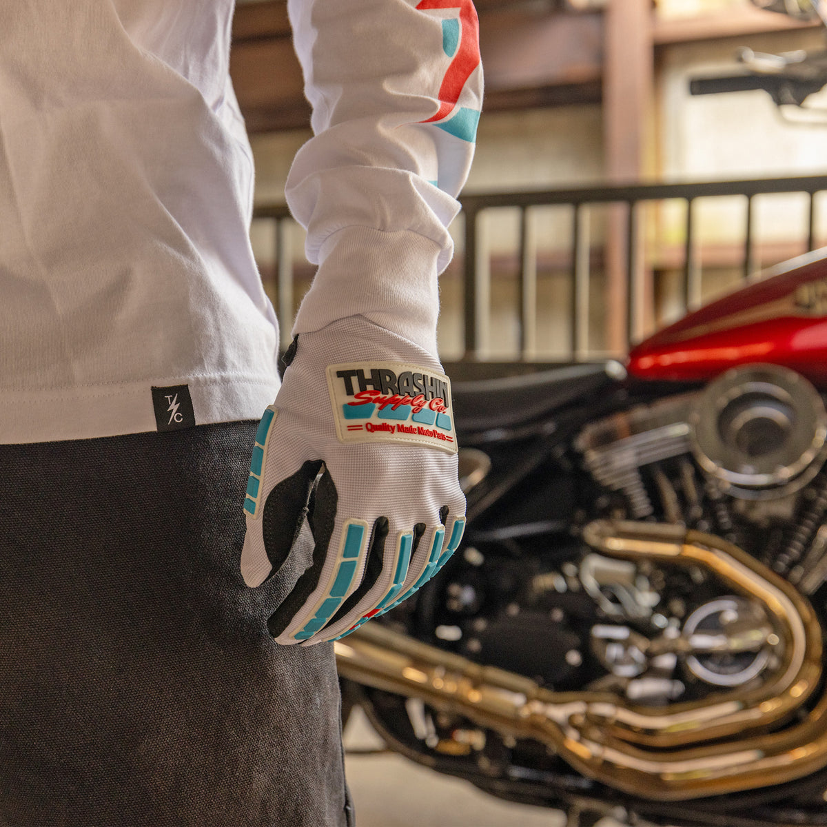 Moto Stealth Gloves - White / Blue