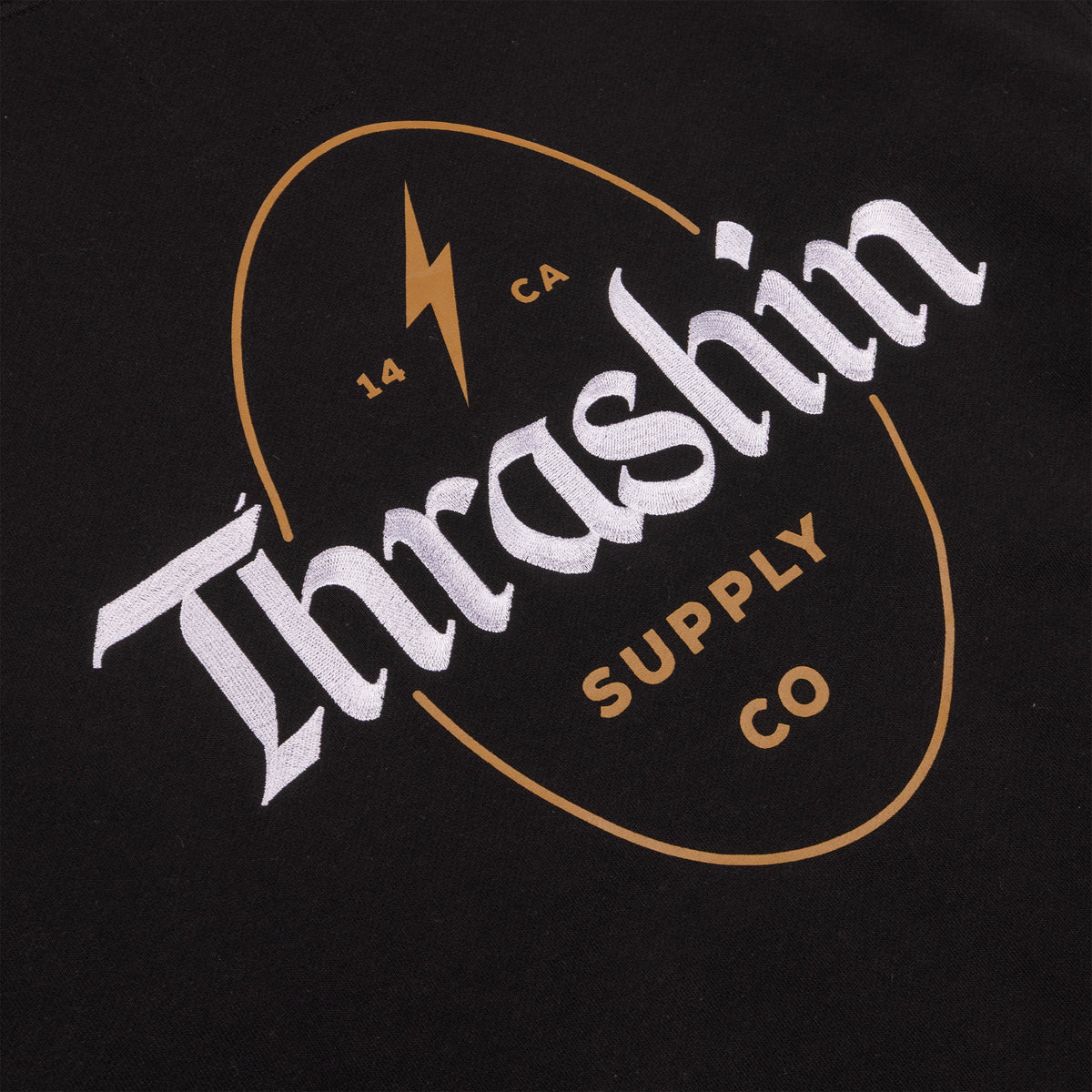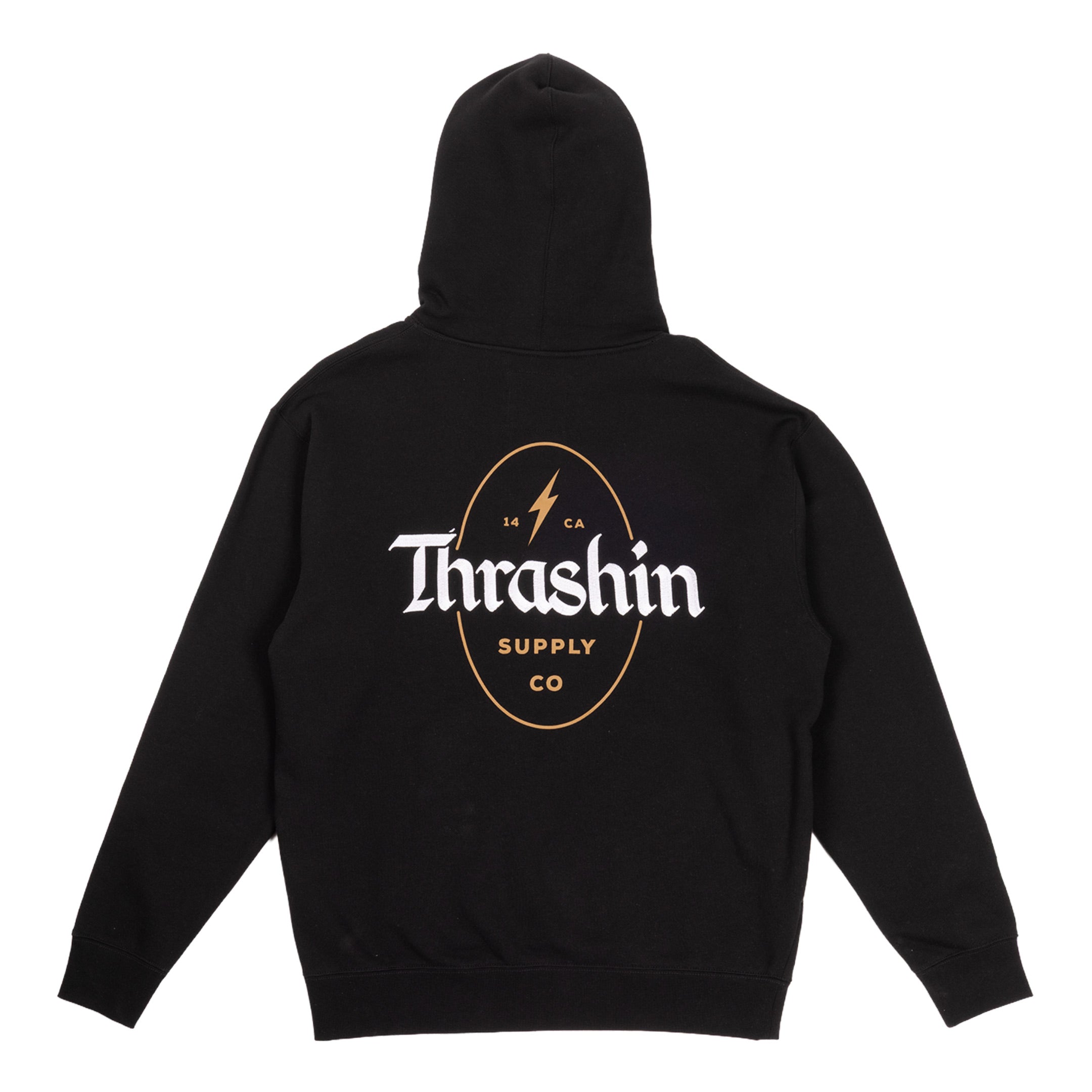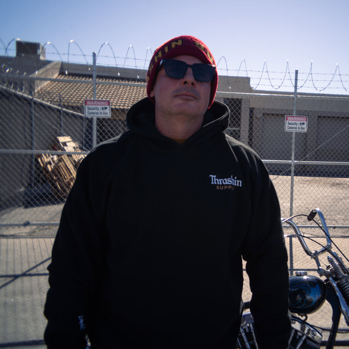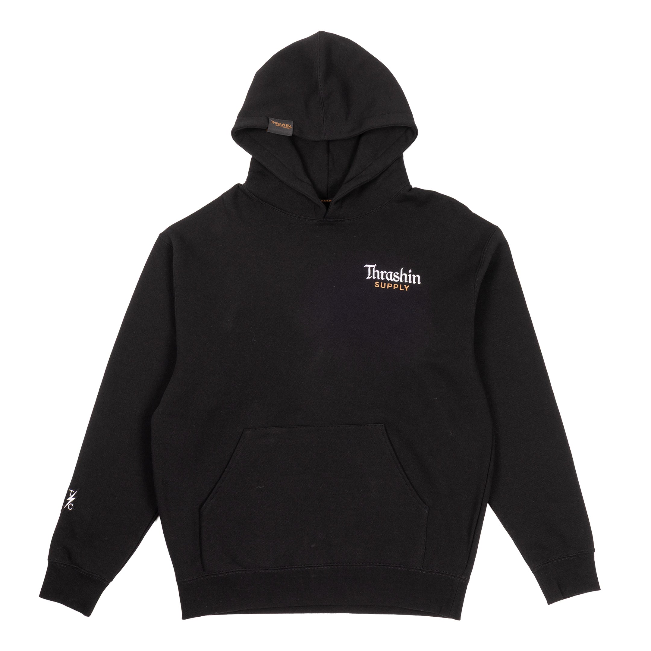 THRASHIN® Hoodies are built for the ride, featuring elastic thumb loops to keep sleeves in place at high speeds and a hidden right-hip zipper pocket big enough for your phone or wallet. Made from heavyweight 12.5oz fleece, they offer an oversized fit with a drop shoulder and no drawcord for a relaxed, modern look.