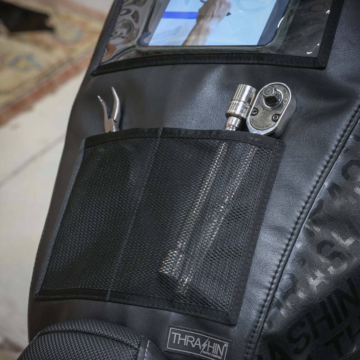 Protect your gas tank while working on your motorcycle with the THRASHIN® tank cover.
