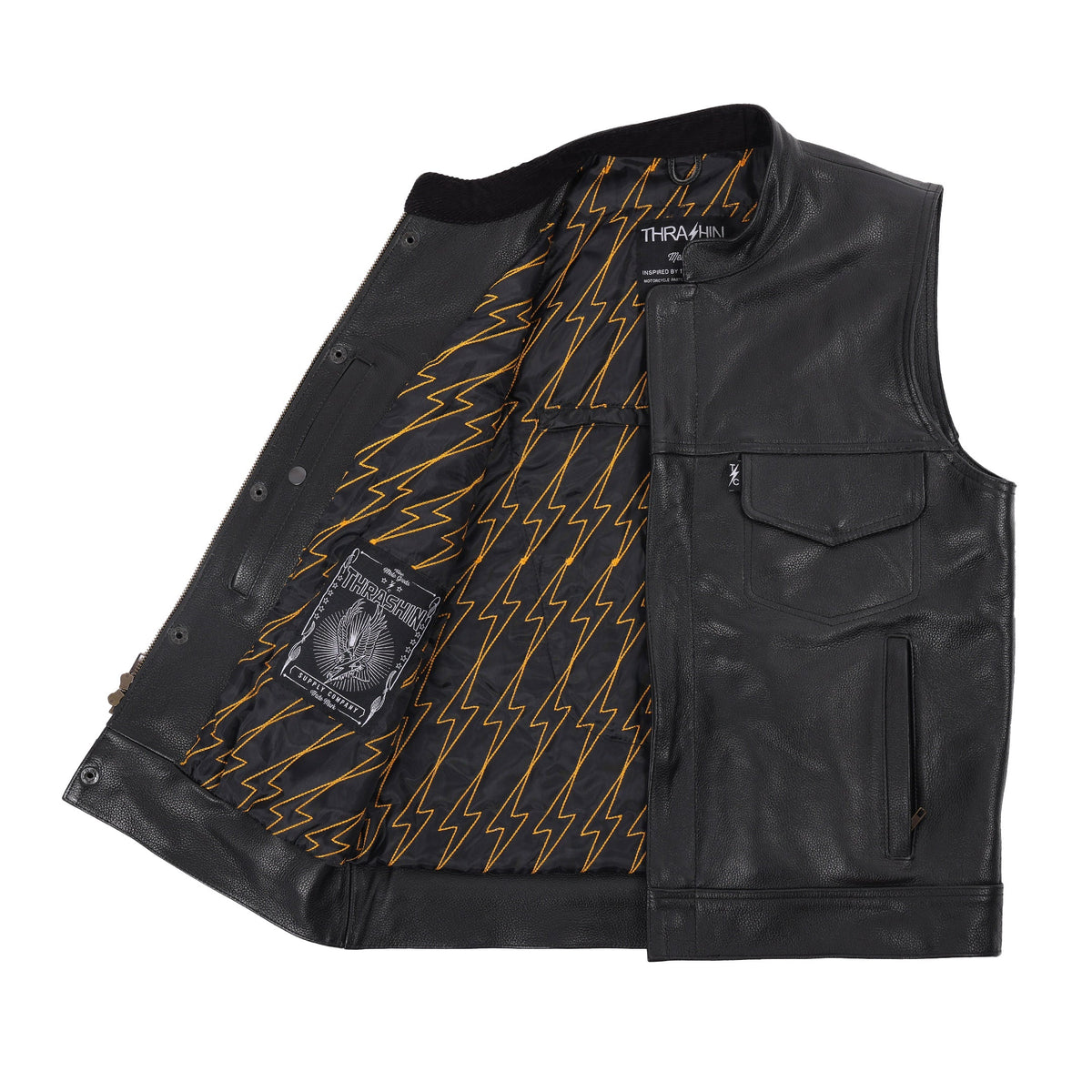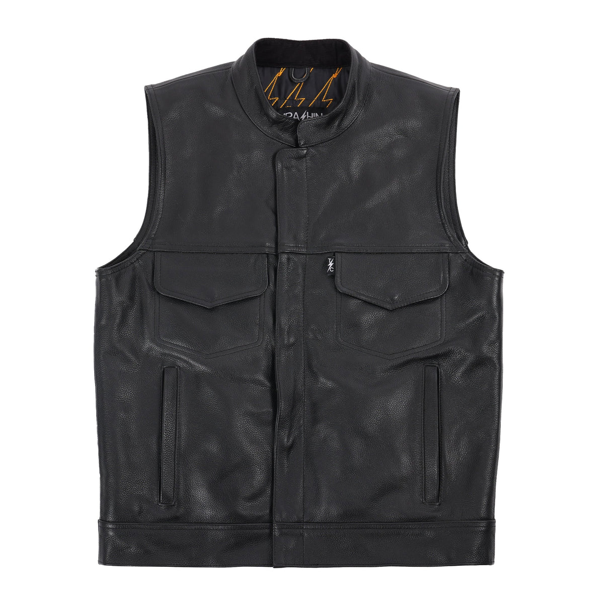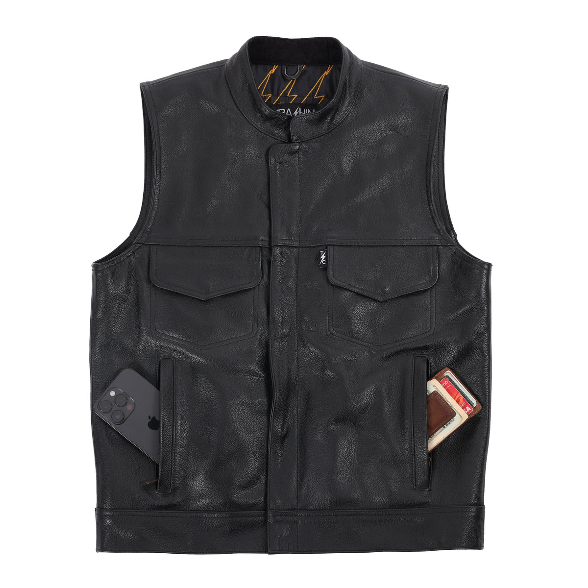 The Mulholland Vest is great for your everyday rider or the weekend warrior. The complete leather design keeps a wear-resistant combination of materials that are made for a variety of weather on the open road. The Mulholland riding vest features an interior hidden pocket for a back protector (sold separately), two front zip-up pockets, two snap-closure breast pockets and two hidden interior pockets for your valuables.