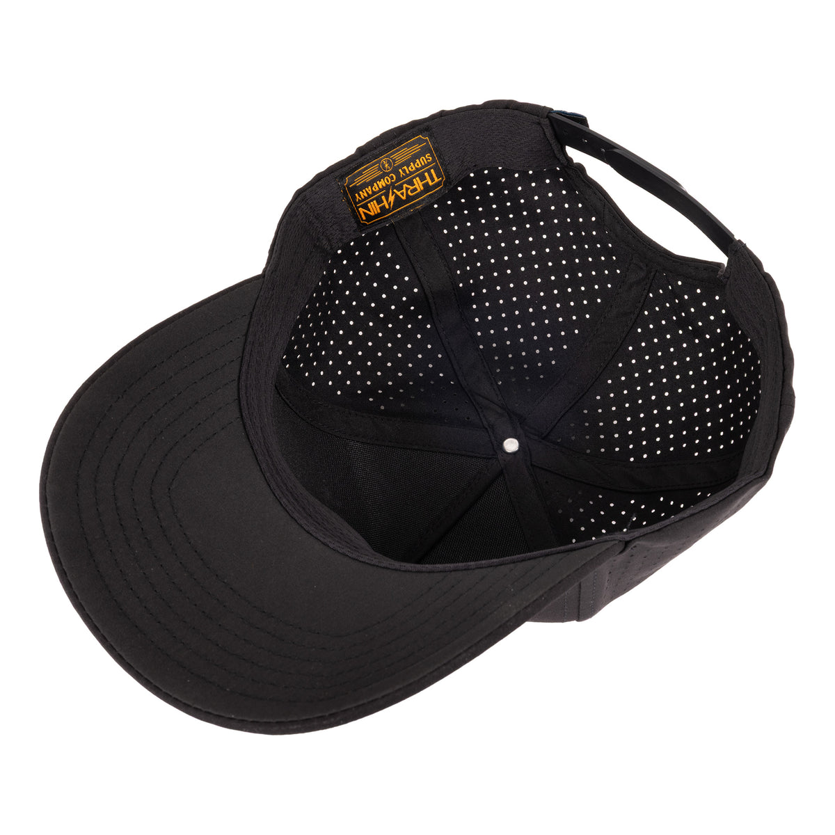 THRASHIN® Tech Performance Snapback is not just another off-the-shelf hat. Constructed from 100% water resistant nylon, featuring laser cut holes for ventilation, durable TPU patches, and a moisture wicking sweat band. Designed to take on the elements while keeping a lightweight and minimal design.